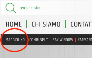 Una volta cliccato sulla voce “Maggiolino” del sotto menù dei veicoli, viene caricata una nuova schermata, che fa vedere l'elenco delle categorie e sotto categorie associate ai maggiolini.