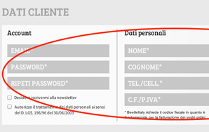 In questa fase vengono richiesti tutti i dati per la registrazione, che andranno a creare un account in modo tale da non dover reinserire ogni volta i dati per un nuovo ordine.