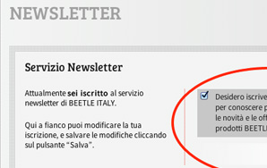 In questa sezione si può scegliere se si vogliono ricevere o meno le nostre newsletter con offerte e promozioni.