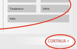 Una volta completato l'inserimento delle informazioni, andare avanti premendo “Continua”. Se tutti i dati sono corretti, e se quindi non apparirà alcun messaggio di allerta che chiede la correzione delle informazioni inserite, si passerà alla fase successiva.