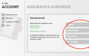 In questa sezione si possono modificare i propri dati fiscali e di consegna merce.