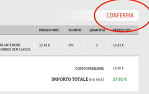 In questo step si può fare un'ultima verifica di tutte le informazioni inserite, per essere certi e procedere quindi all'acquisto finale tramite il pulsante in alto a destra “Conferma”.
